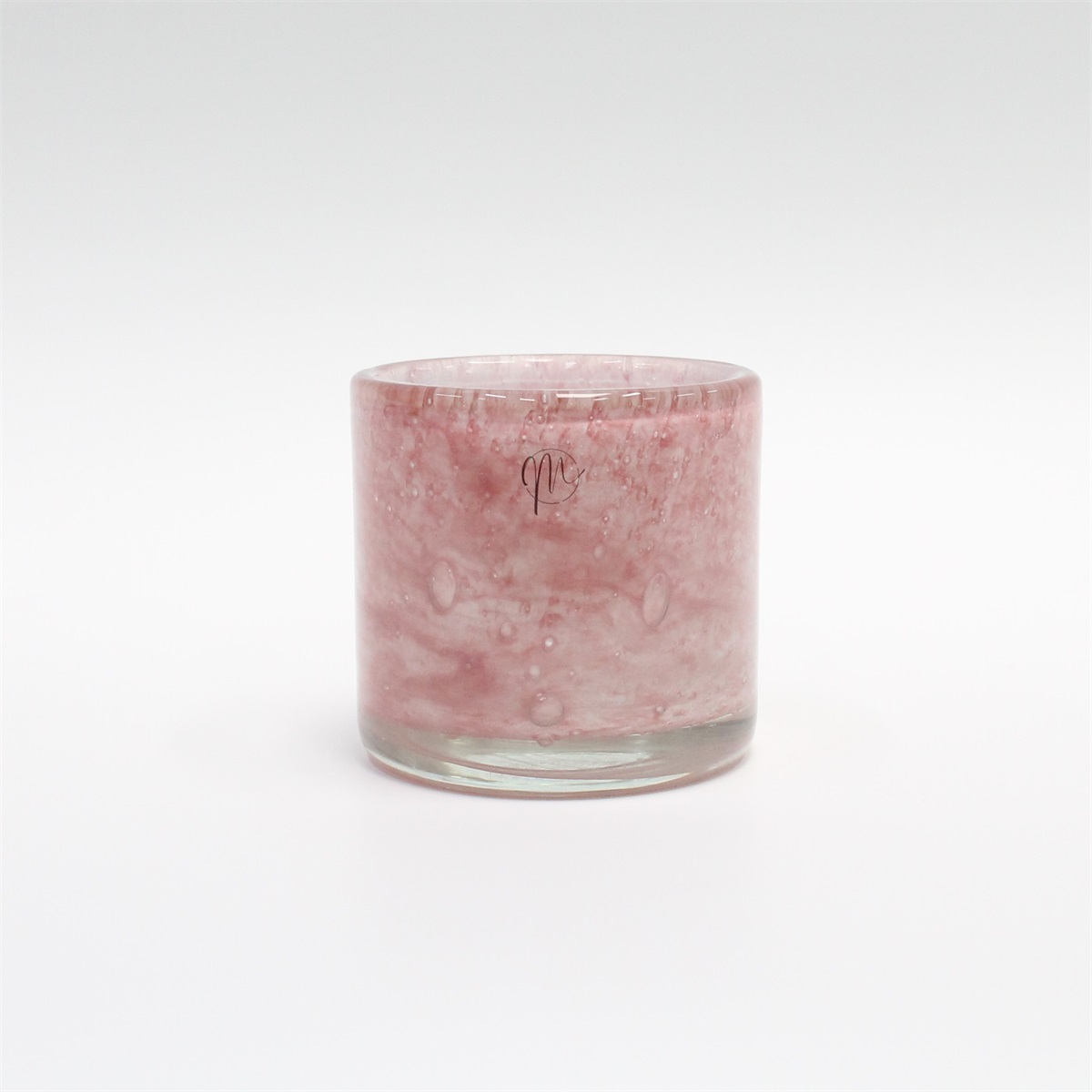 Stilren handblåst cylinderformad ljuslykta som sprider ett varmt och stämningsfullt sken. Tillverkad med omsorg och unik design som lyfter både vardagsrum, uteplats och middagsdukning. Passar både värmeljus och små blockljus.